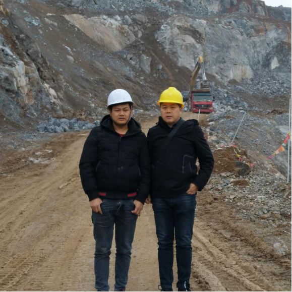 采礦:潛孔鉆機穿孔→深孔爆破→部份大塊采用液壓破碎錘二次破碎→挖掘機裝車→自卸汽車運輸,送至礦倉或堆場。