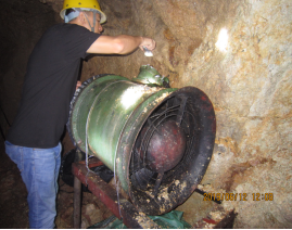 該礦采用抽出式機械通風系統(tǒng),礦山在XJ390回風斜井口安裝一臺礦用節(jié)能風機,并設(shè)有反風裝置,能進行反風。通風設(shè)施較為完善,布局合理。礦山供風量能滿足礦山生產(chǎn)需要,有毒有害氣體濃度未超過《規(guī)程》規(guī)定。礦山制定有通風管理制度,建立有測風測氣檔案資料。礦山的通風設(shè)施、通風能力、通風效果與質(zhì)量、反風設(shè)施、通風管理符合規(guī)定要求。
